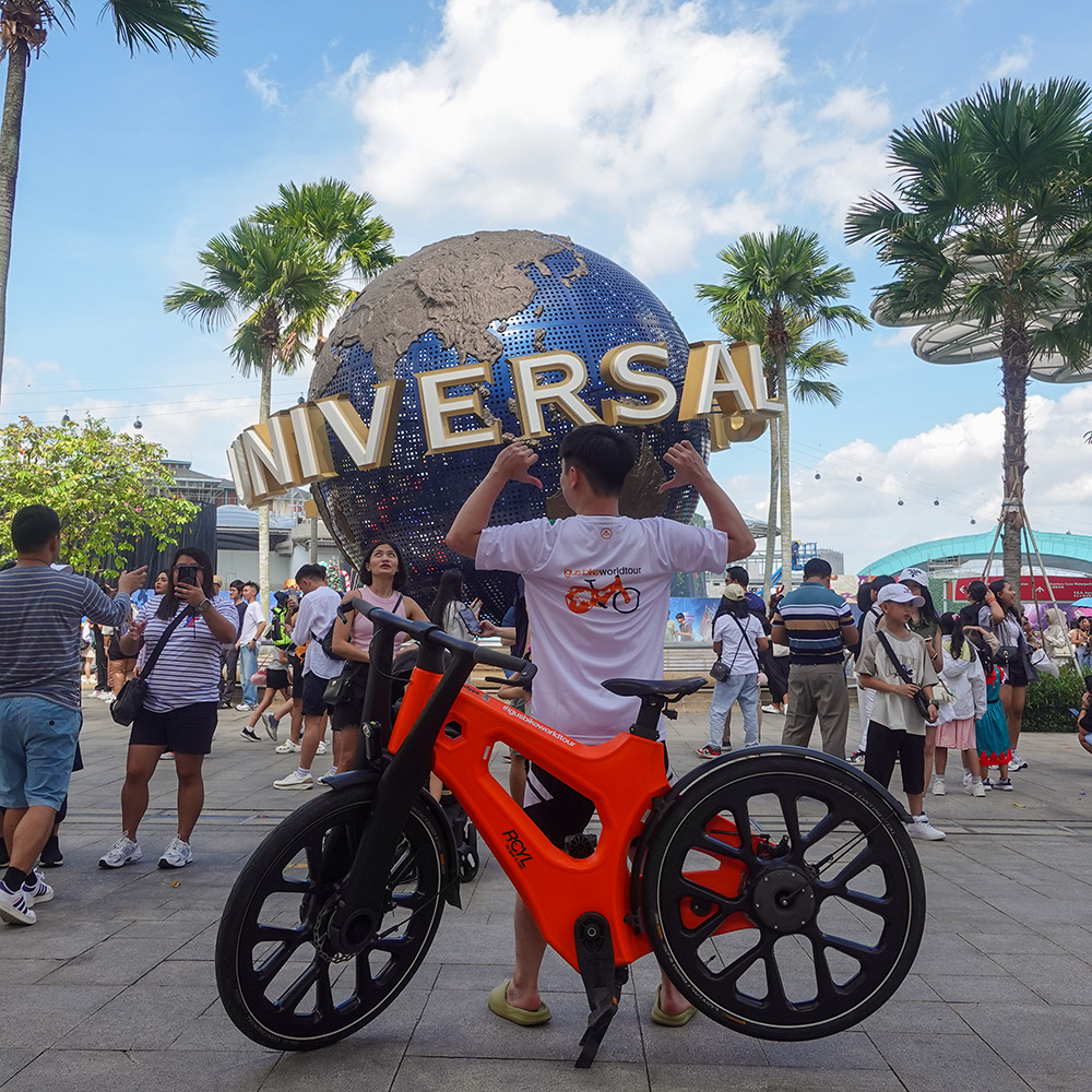 Die Tour würde nicht worldtour heißen, wenn diese nur auf Deutschland begrenzt wäre – deshalb ging es von winterlich frischen 1° C mit Schneefall in Deutschland in Richtung Asien! Die nächste Station: Singapur. Zehn Uhr morgens, 33° C, 90 % Luftfeuchtigkeit! Die Frisur sitzt, das Fahrrad fährt, Kilometer um Kilometer werden in den Asphalt gebrannt.