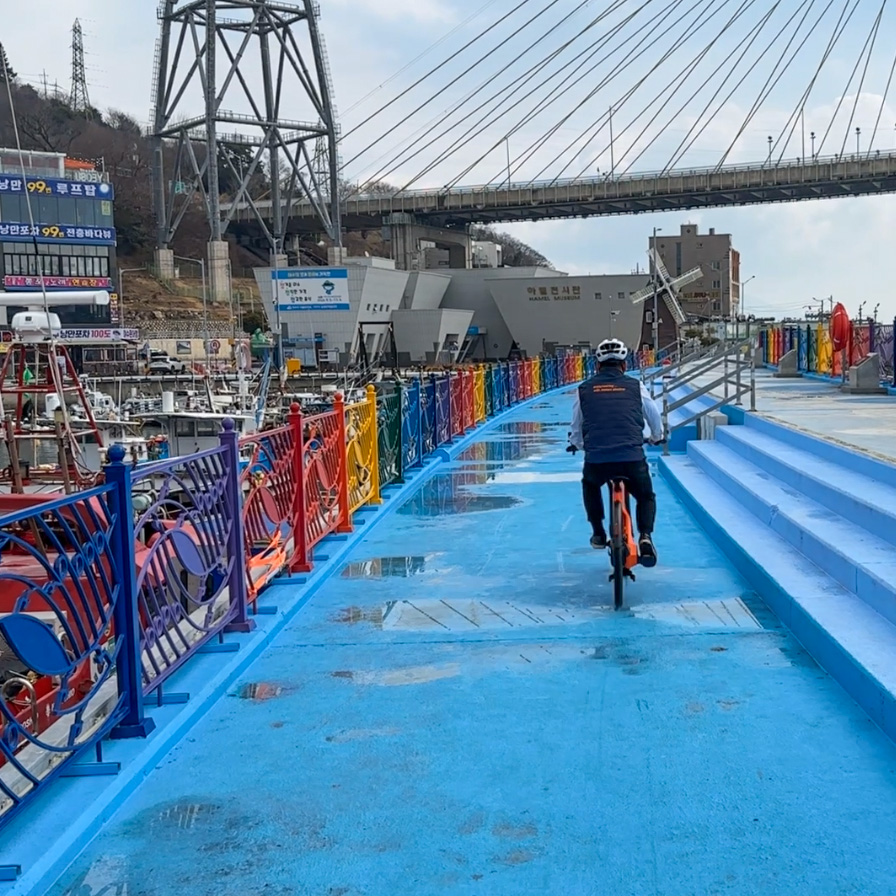 Die Reise führte nach Yeosu, einer Küstenstadt an der südlichsten Spitze des koreanischen Festlandes. Die Luft war frisch und roch nach Meer, und die von sanften Kurven gesäumten Straßen luden zu einer sanften und erfrischenden Fahrt ein. Der erste Halt war der beeindruckende Hamel-Leuchtturm, dessen rote Farbe sich vom endlosen Blau des des Himmels und des Ozeans abhebt. Sein farbenfrohes Design und die malerische Umgebung machten ihn zu einem perfekten Ort, um innezuhalten und die Schönheit der Küste auf sich wirken zu lassen.