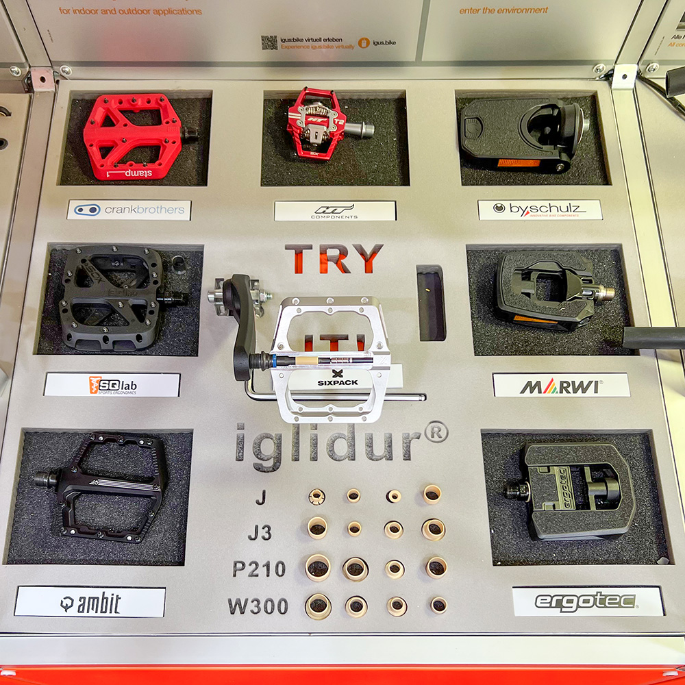 Auf der igus-Seite des Messestands gab es auch viele interessante Einblicke: Zum einen wurden viele Komponenten präsentiert, in denen die schmierfreien Gleitlager, Flachführungen usw. zum Einsatz kommen. Zum anderen wurden einige Farbvarianten des E-Bike-Fahrradrahmens aus thermoplastischem Kunststoff gezeigt, der innovativ im Spritzgussverfahren hergestellt wird und sich bereits im Kundeneinsatz bewährt hat. Und mit dem Design & Innovation Award 2025 ausgezeichnet wurde! Auch der Kunststoff-Fahrradlenker wurde ausgestellt, der beispielsweise beim schwedischen Retro-Cargobike Packoped zum Einsatz kommt.