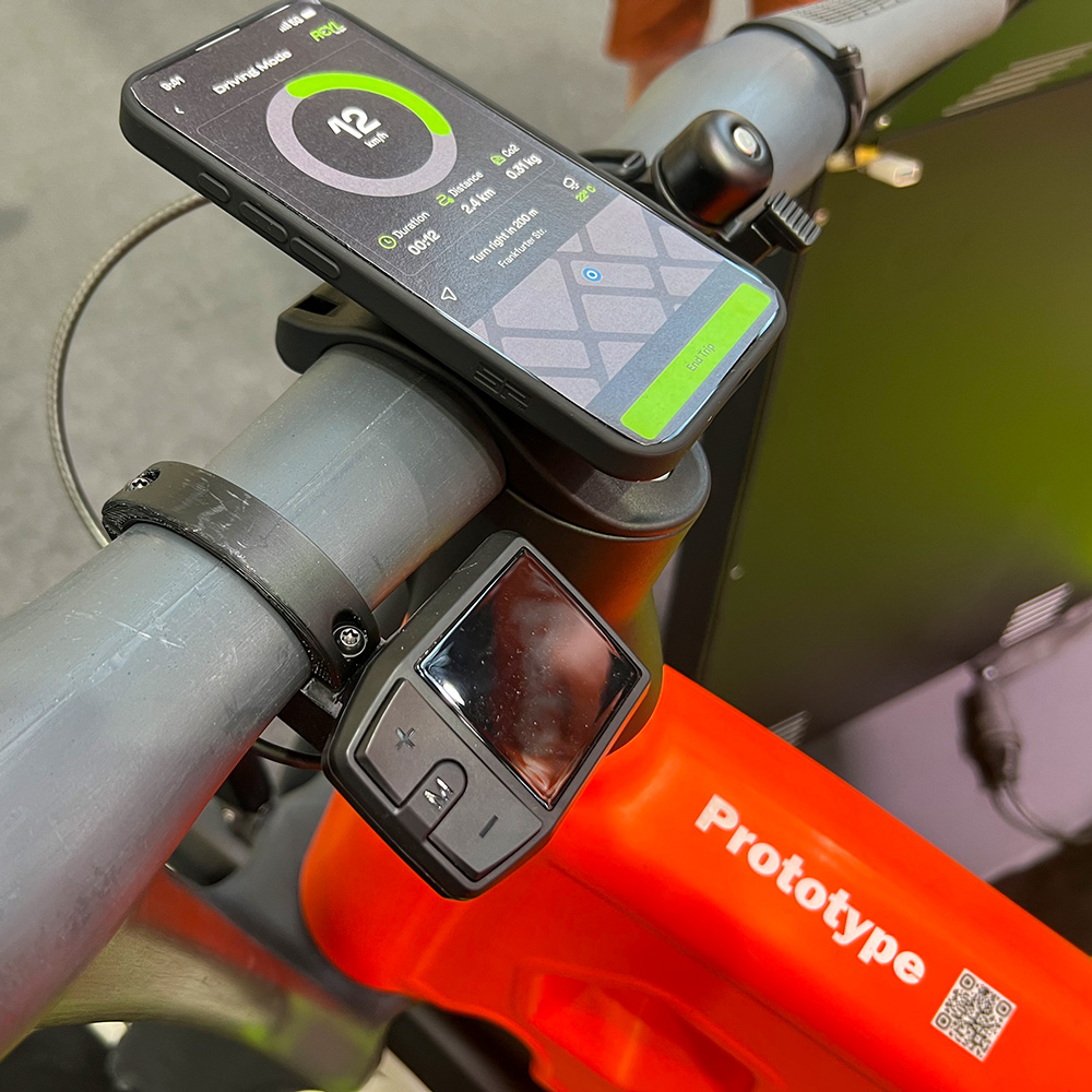 Wie schon erwähnt, konnte der neueste elektrische Prototyp auf Herz und Nieren getestet werden. Vom Motor konnte man auf den ersten Blick fast nichts erkennen – nur ein Display am Lenker und ein Kabel ließen auf das elektrifizierte RCYL schließen. Der Motor selbst verschwand diskret komplett in der Nabe, die bei unserem Fahrrad ja etwas größer als bei anderen ist. Auffällig waren die neu hinzugefügten Sitz- und Kettenstreben auf der linken Fahrradseite, welche für mehr Stabilität sorgen und helfen, die Kraft des E-Antriebs verwindungsfrei auf die Straße zu bringen. Die Streben sind so natürlich noch nicht final – wir stehen hier erst am Anfang der Entwicklung.
