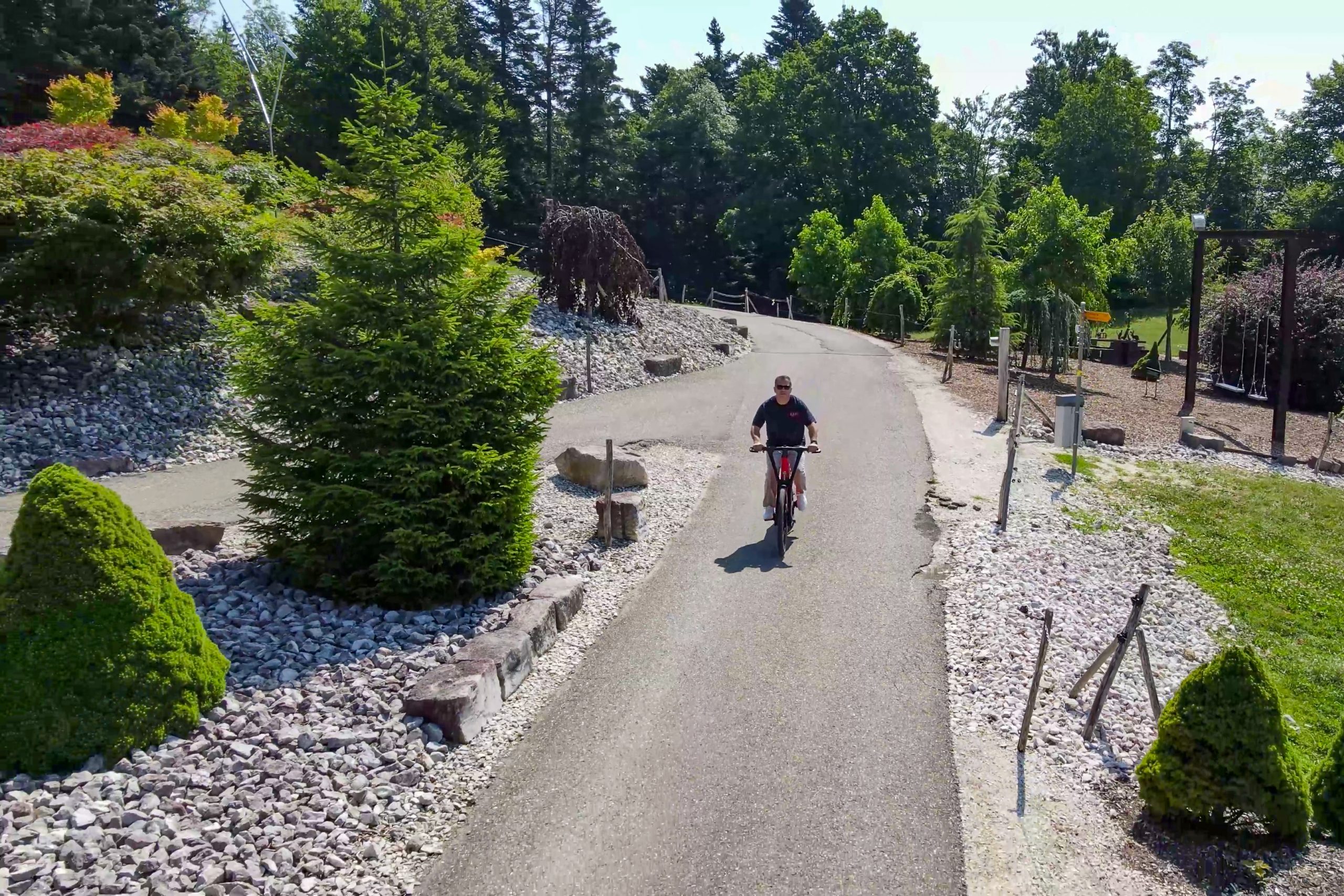Nach einem Besuch im Büro und einer kleinen Mittagspause schwingt sich Axel aufs Fahrrad und radelt weiter zur Rivella AG, dem zweitgrößten Hersteller von Erfrischungsgetränken in der Schweiz. Auf dem Weg kommen wir am Laufkraftwerk Ruppoldingen vorbei, einem Wasserkraftwerk direkt am Fluss Aare nahe Boningen. Das Kraftwerk erzeugt jährlich rund 115 GWh Strom – genug, um tausende Haushalte zu versorgen. Besonders beeindruckend ist, dass hier auch ökologische Maßnahmen umgesetzt wurden, wie zum Beispiel Flachwasserzonen und Inseln für den Schutz heimischer Tierarten.