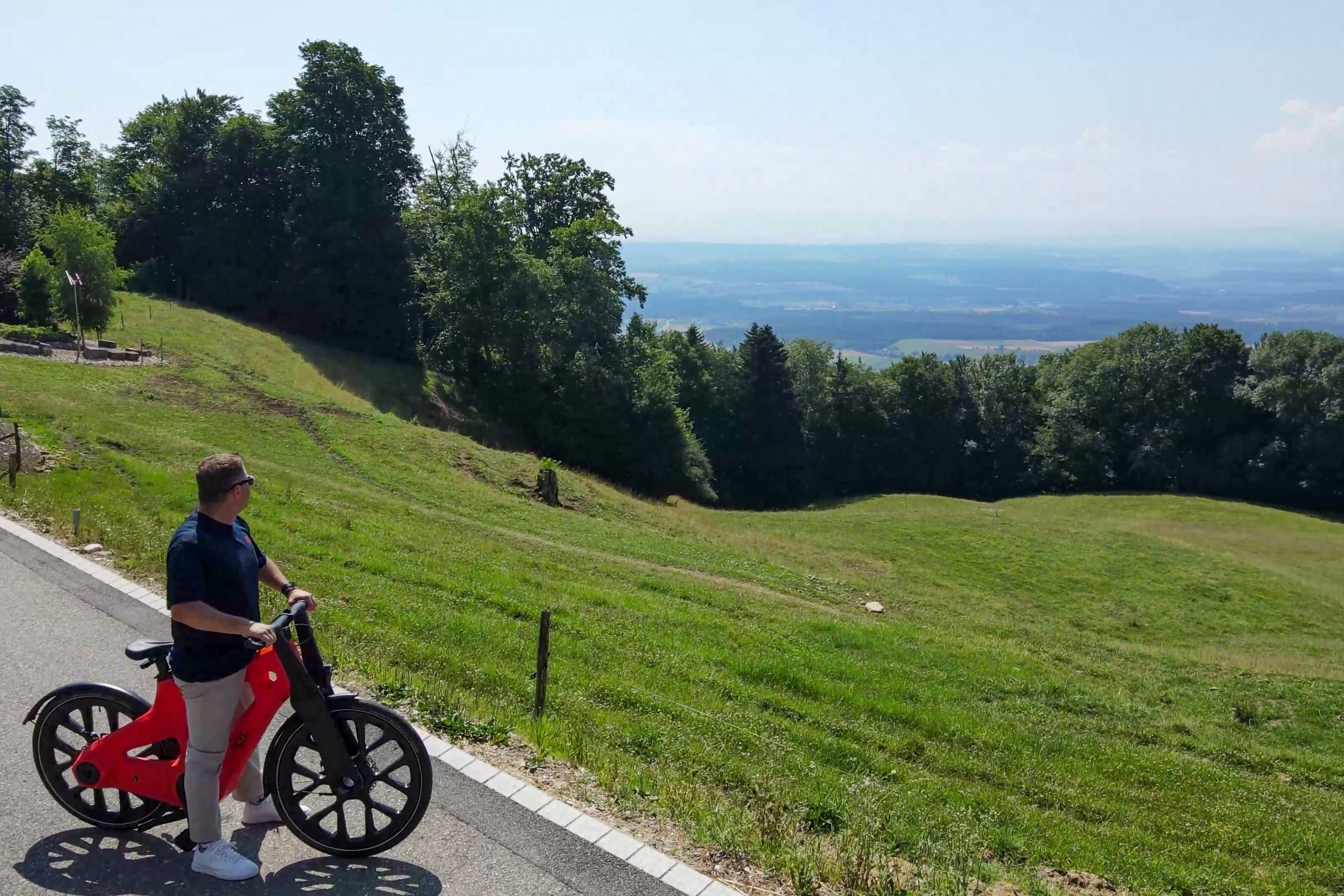 Dort angekommen, machen wir uns direkt auf den Weg zur Aussichtsplattform Blüemlismatt, die auf beeindruckenden 814 Metern über dem Meeresspiegel liegt. Der Ausblick auf die Hügel und Täler des Jura ist einfach fantastisch. Blüemlismatt ist ein wahrer Traum für Naturliebhaber und Wanderer – und wir genießen die Ruhe und die frische Luft in vollen Zügen. Von hier oben haben wir sogar einen Blick auf das igus-Büro – ein kurzer Stopp, um unsere Kollegen zu grüßen, ist natürlich Pflicht!