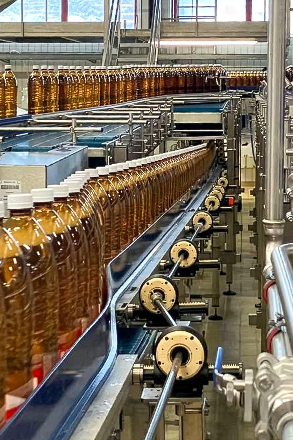 Abgefüllt wird das Getränk in Rothrist im Kanton Aargau – und dabei spielt igus eine entscheidende Rolle! Ismail Ibraimi, Projektmanager für Technologie und Innovation, gibt uns eine Führung durch die Abfüllanlage. Dort wird das Apiro-System eingesetzt, mit dem sowohl Höhen- als auch Geländeanpassungen realisiert wurden.