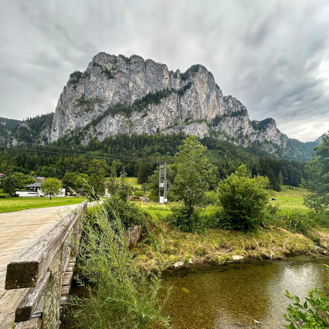 Los geht’s an der Seeache-Brücke, wo der glasklare Fluss Seeache in den Mondsee mündet. Ein perfekter Startpunkt, umgeben von bewaldeten Hügeln und mit der Aussicht auf eine abwechslungsreiche Tour entlang des Sees. Hier spürt man sofort: Die Abenteuer auf zwei Rädern können beginnen!