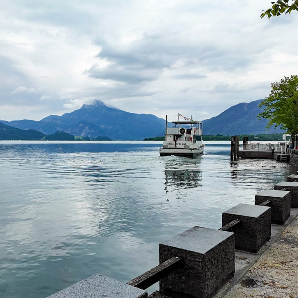 Ein weiteres Highlight der Tour ist die Promenade Mondsee. Die Stadt begrüßt uns mit ihrem kultivierten Charme: Kleine Cafés, Boote, die sanft im Hafen schaukeln, und die ruhige Uferlandschaft machen deutlich, wie eng hier Leben und Landschaft miteinander verwoben sind – einfach perfekt, um die Seele baumeln zu lassen.