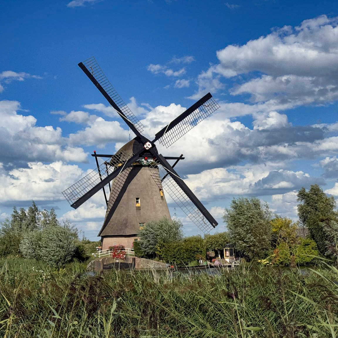 Mit Mark und Justine durch diese beeindruckende Landschaft zu radeln, fühlte sich an, als ob man direkt in ein Gemälde eintauchte: Windmühlen, die sich majestätisch gegen den Himmel recken, umgeben von Kanälen, Schilf und weitläufigen Poldern.