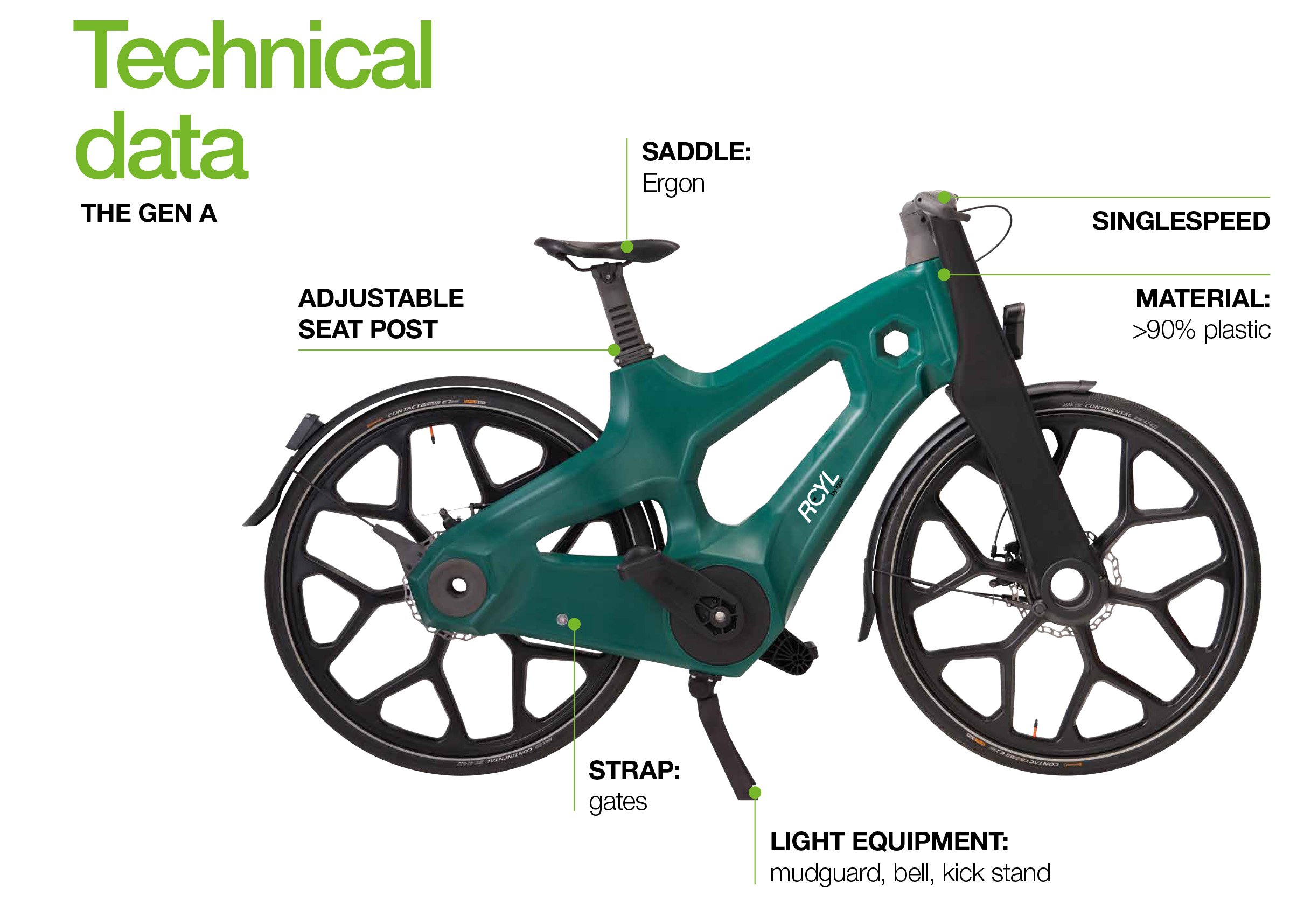 With RCYL, you can get around town quickly and sustainably. The bike, which is suitable for everyday use, does not rust, needs no oil and is virtually maintenance-free.