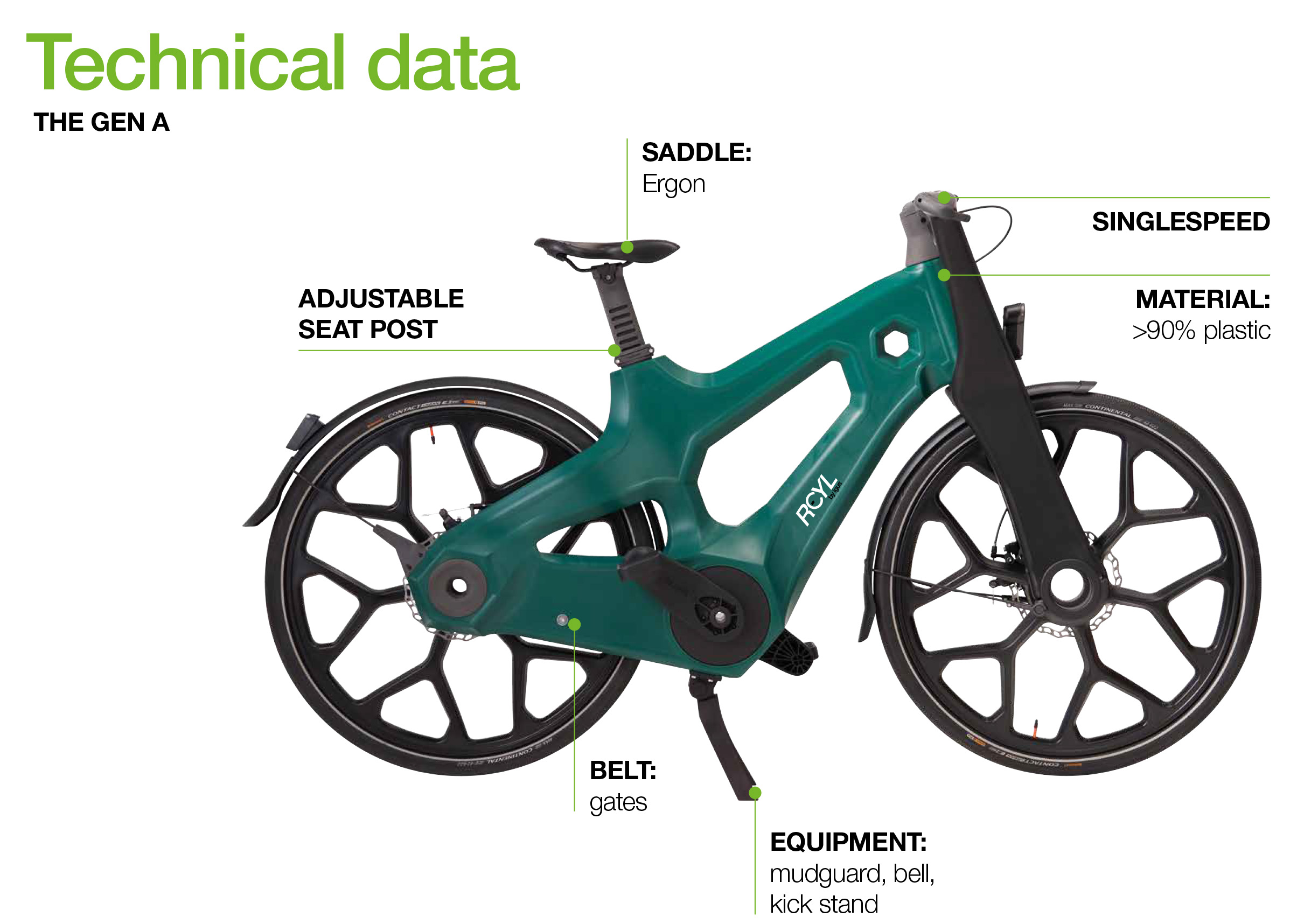 With RCYL, you can get around town quickly and sustainably. The bike, which is suitable for everyday use, does not rust, needs no oil and is virtually maintenance-free.